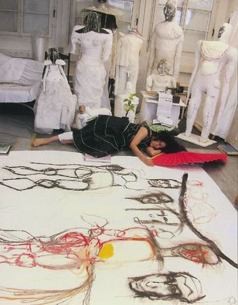 «...A work with power ... chaos and shape ... action/creativity/body ... subject/object ... organic and multiple ... pulsing remains ... amog contortions and distortions proper to arts guts ... art with sex ...»