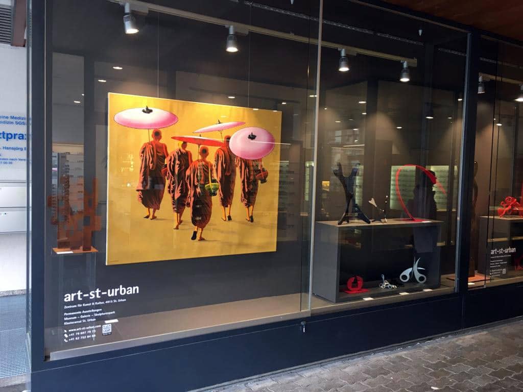 Ein grosses Schaufenster im Zentrum von Engelberg – eine etwas andere Art um ausgewählte Kunstwerke aus den art-st-urban Programmen zu zeigen.